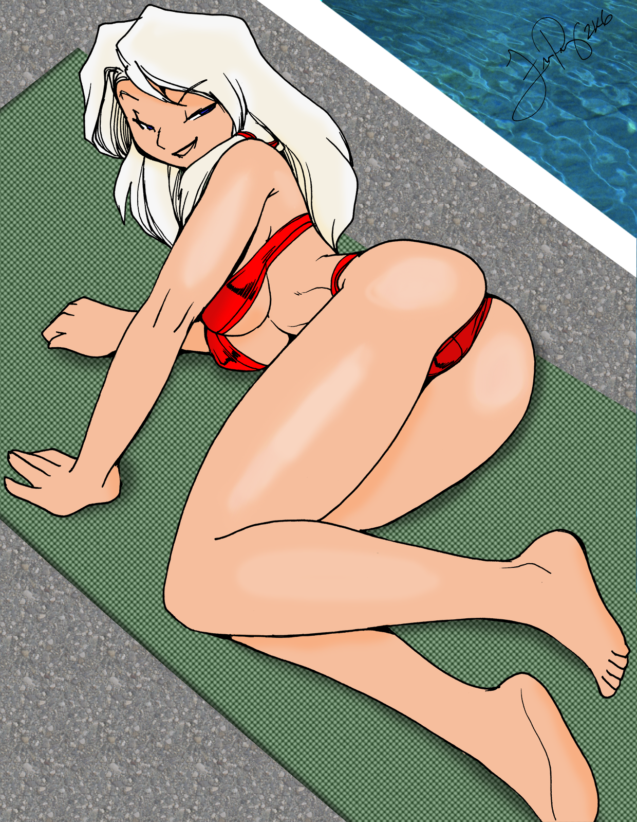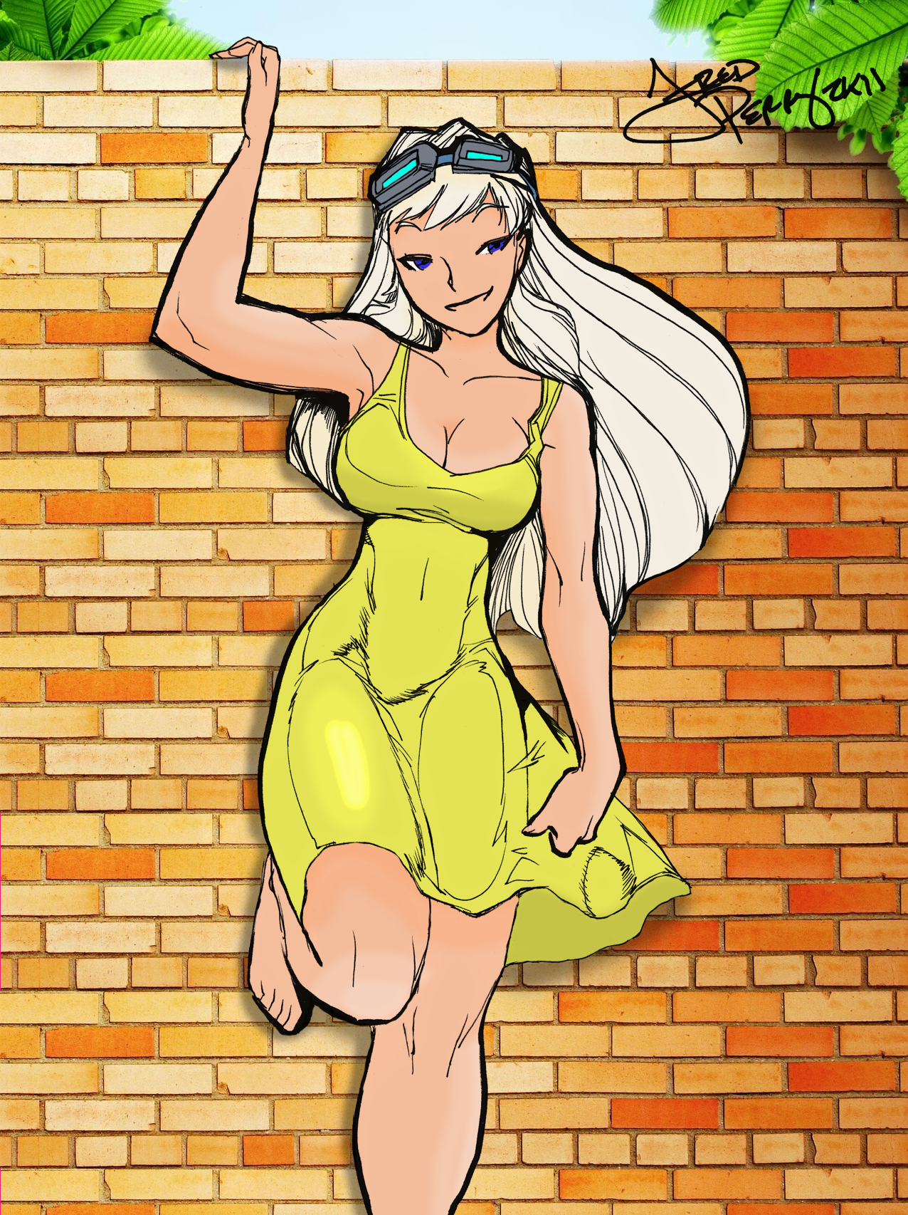 Glamour Shot for a magazine to promote her superhero team. One of her sillier costume ideas. Working in her lab. On the attack. A day in the park. A day at the pool. Bestiary